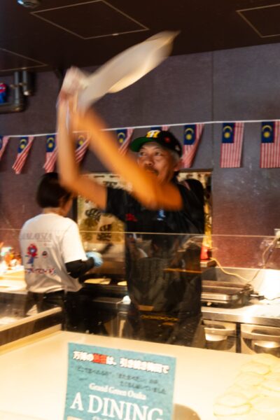 これが話題のロティチャナイのロティの大回し。本日は多めに回しています!