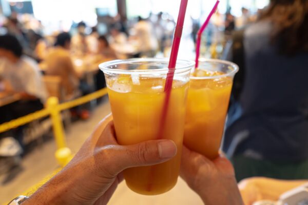 仕方ないので、並びながらマンゴージュースでかんぱーい!