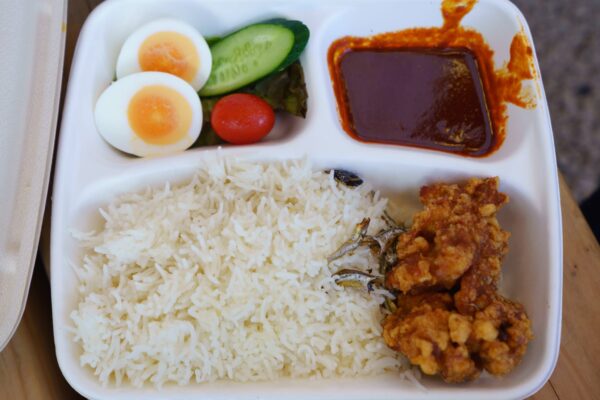 もう一品は、ナシラマ。甘辛のサンバルをまぜまぜして、